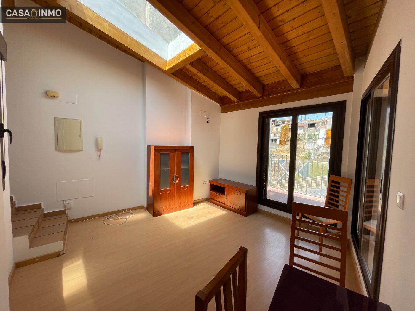 Este acogedor ático disponible para alquiler se encuentra situado en la cuarta planta sin ascensor, justo en el corazón del centro de Barbastro. Con una superficie útil de 65 m2, este piso amueblado cuenta con una habitación que incluye un práctico altillo perfecto para maximizar espacio y almacenamiento. La zona social consta de un salón-cocina equipada, también con altillo dentro de la cocina que ofrece funcionalidad adicional. El baño está diseñado modernamente e incorpora ducha. Disfrute además de momentos al aire libre gracias a su amplia terraza desde donde podrá admirar vistas impresionantes hacia la Catedral de Barbastro; ideal para relajarse o compartir momentos inolvidables con amigos y familiares. Los acabados interiores son elegantes: techo revestido en madera aporta calidez al ambiente mientras que los suelos combinan parquet y gres cerámico aportando estilo contemporáneo a cada rincón del hogar. En términos prácticos, las ventanas cuentan con carpintería exterior en aluminio dotadas doble cristal climalit lo cual asegura aislamiento térmico eficiente; así como calefacción eléctrica diseñada especialmente para bajo consumo energético optimizando gastos mensuales durante toda temporada invernal.También cabe mencionar que todos los gastos comunitarios están incluidos facilitando aún más tu experiencia residencial.~
